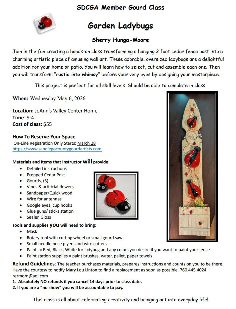Garden Ladybug Wednesday, May 6, 2026 9:00 AM 4:00 PM JoAnn Clark's Valley Center Home (map) Google Calendar ICS